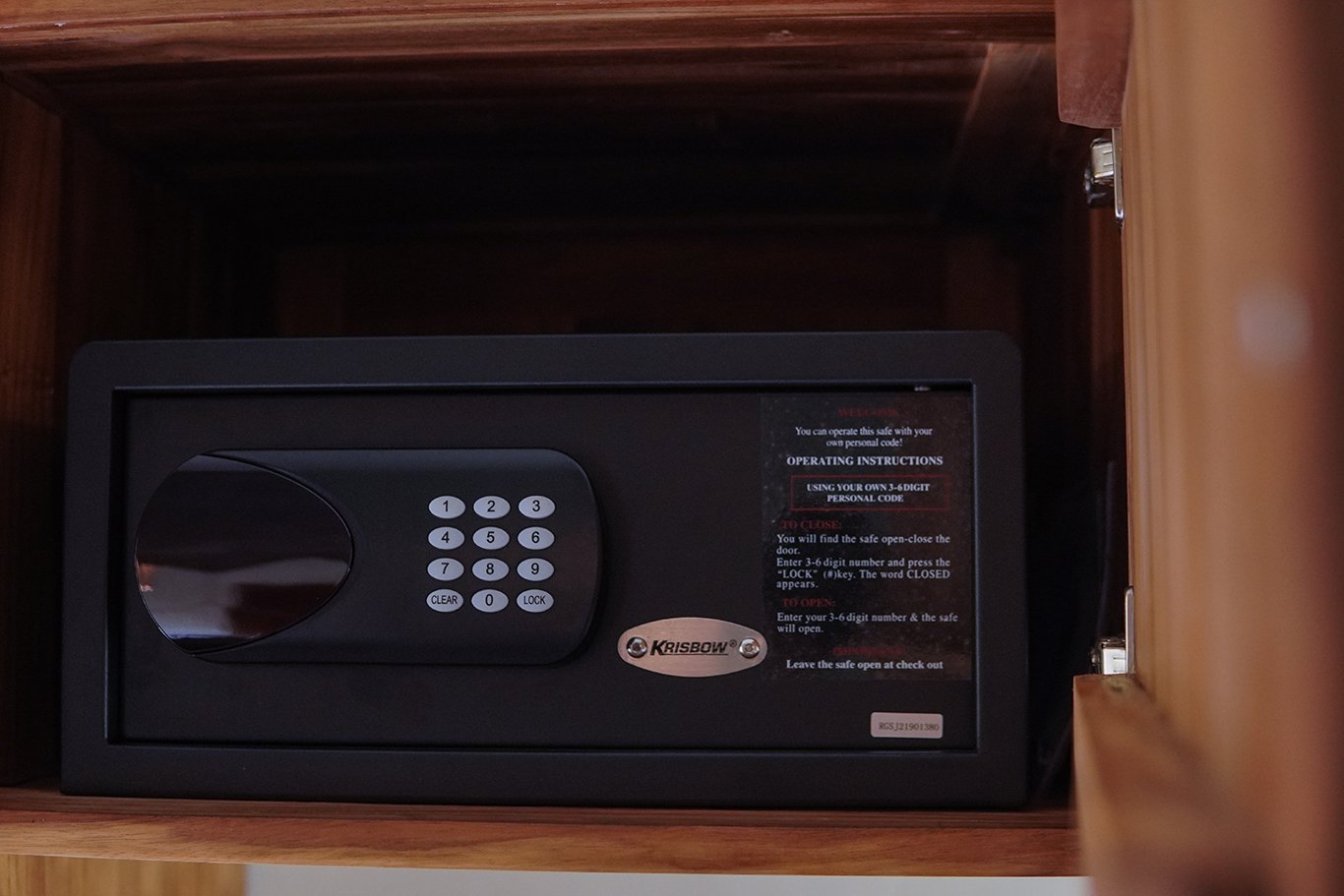 All room at the Maha Lokha Balangan equipped with hotel standard safe deposit box located at the upper right drawers