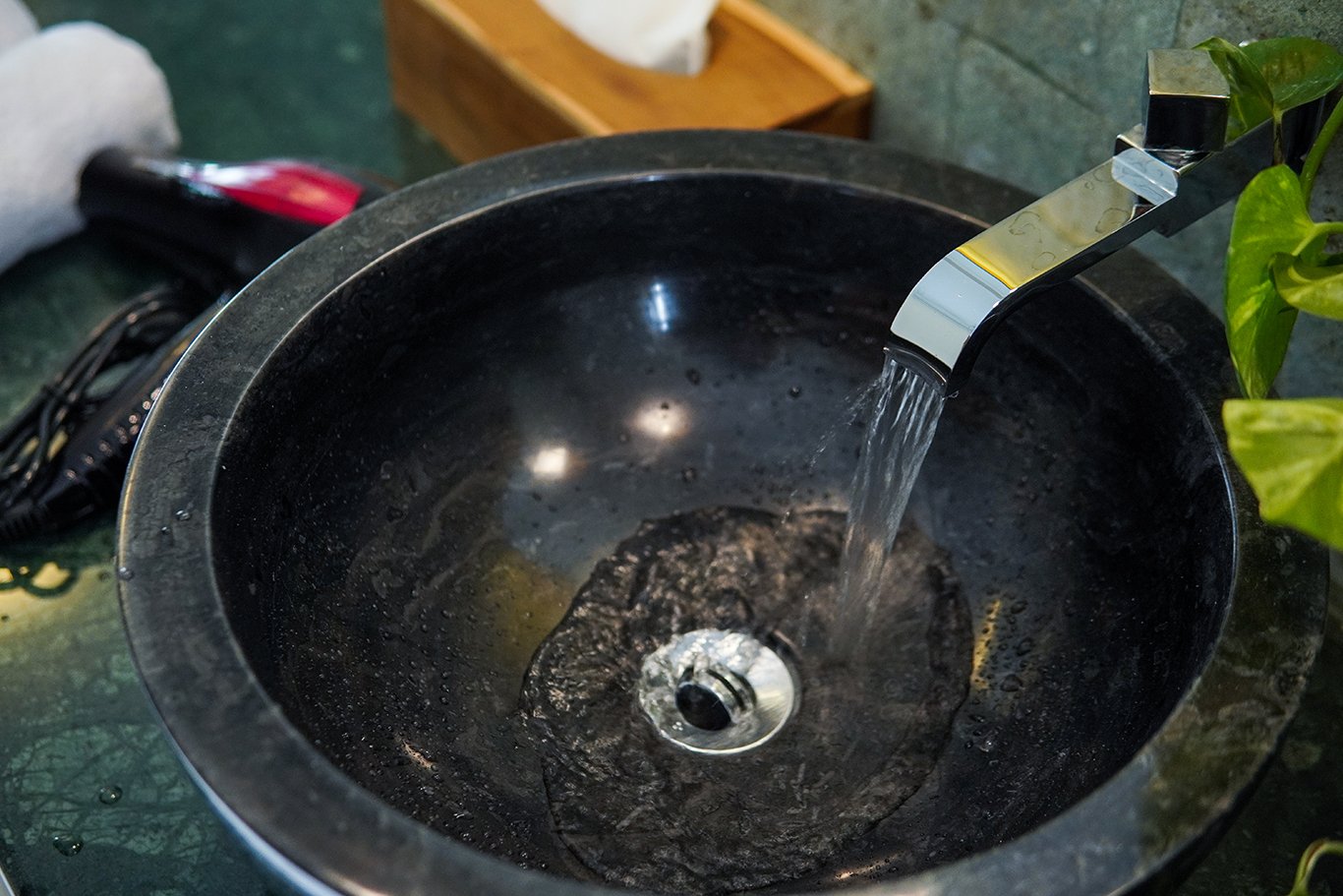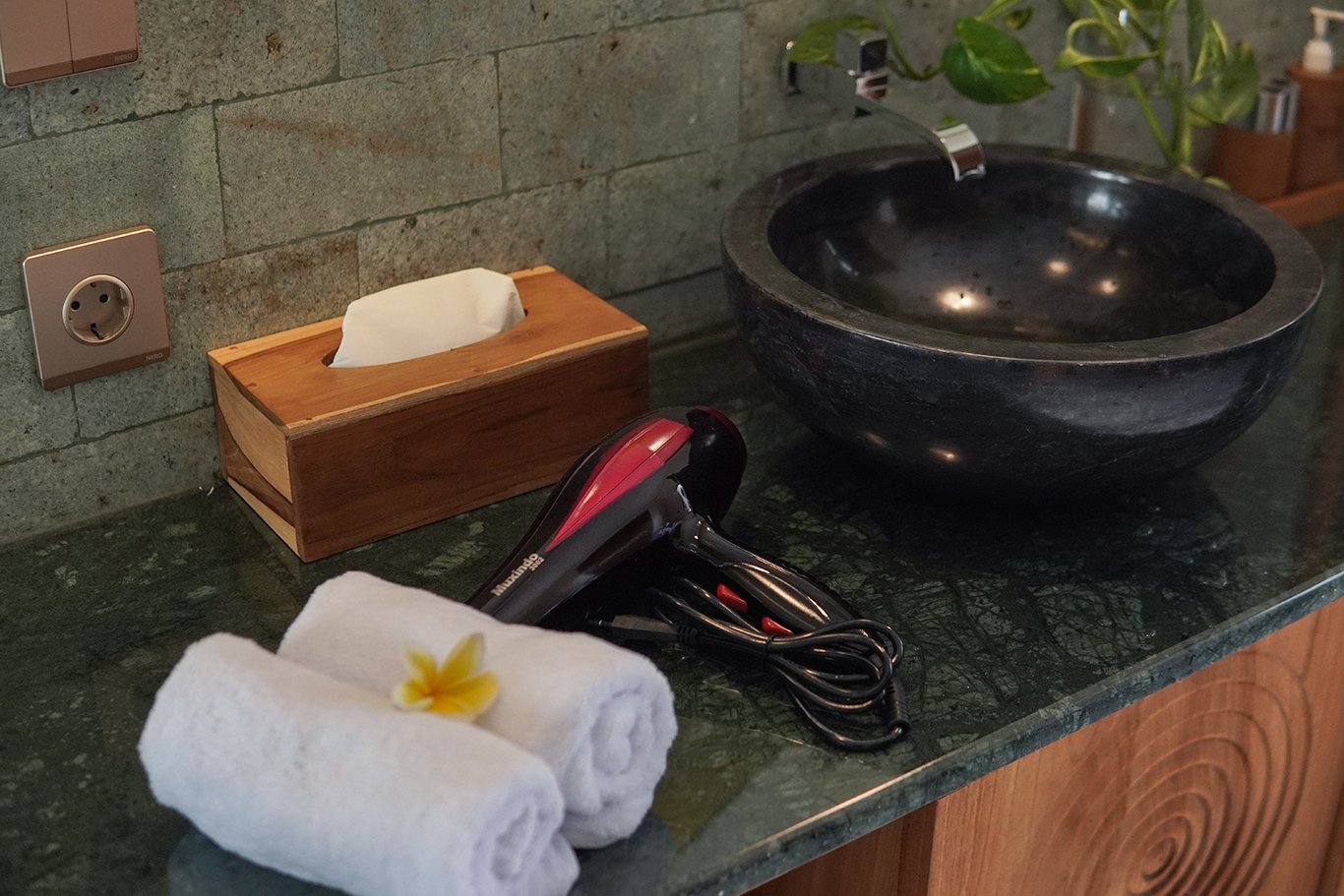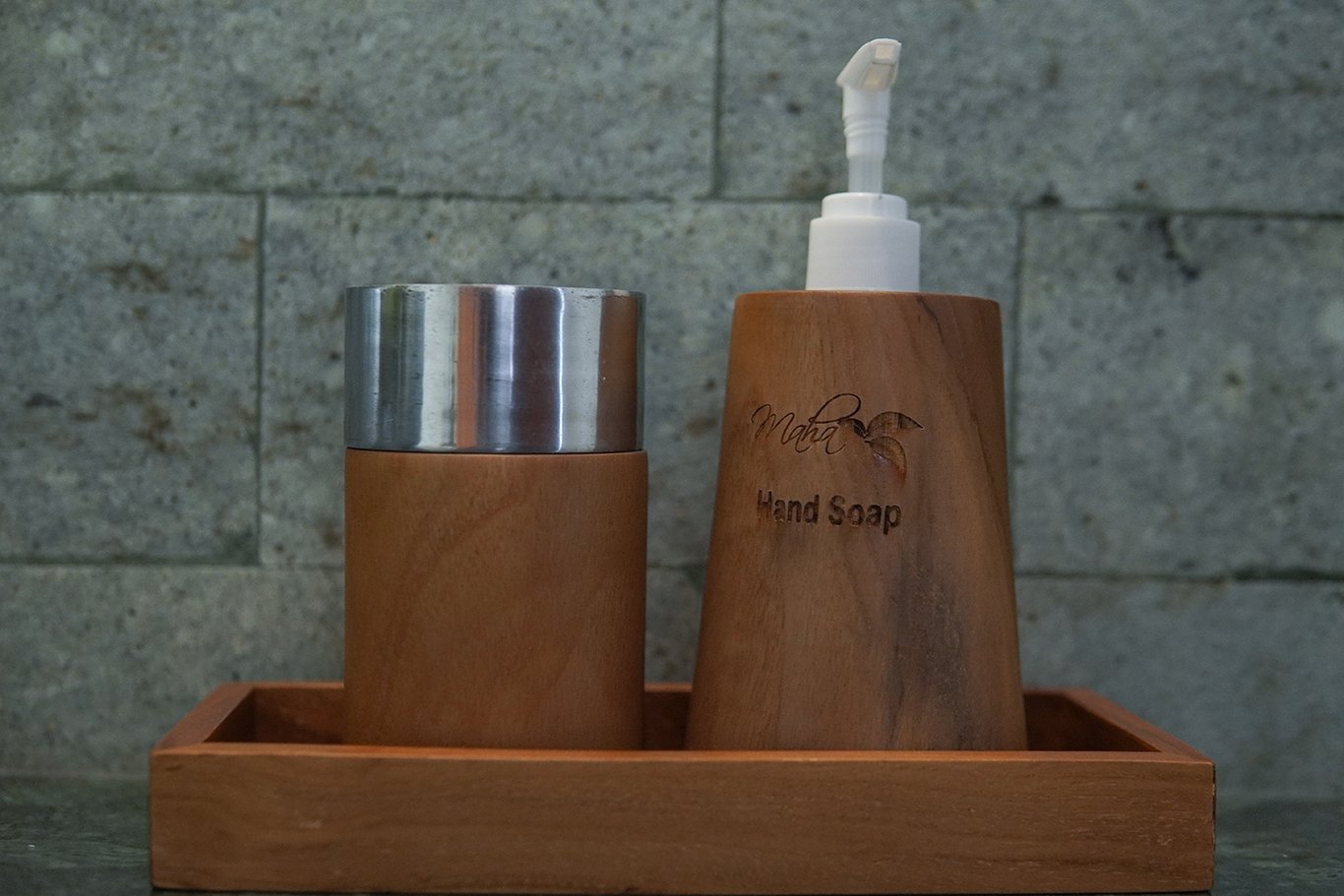 all of the vanity bowl are fully equipped with hand soap, toothbrush holder which made from solid teak wood