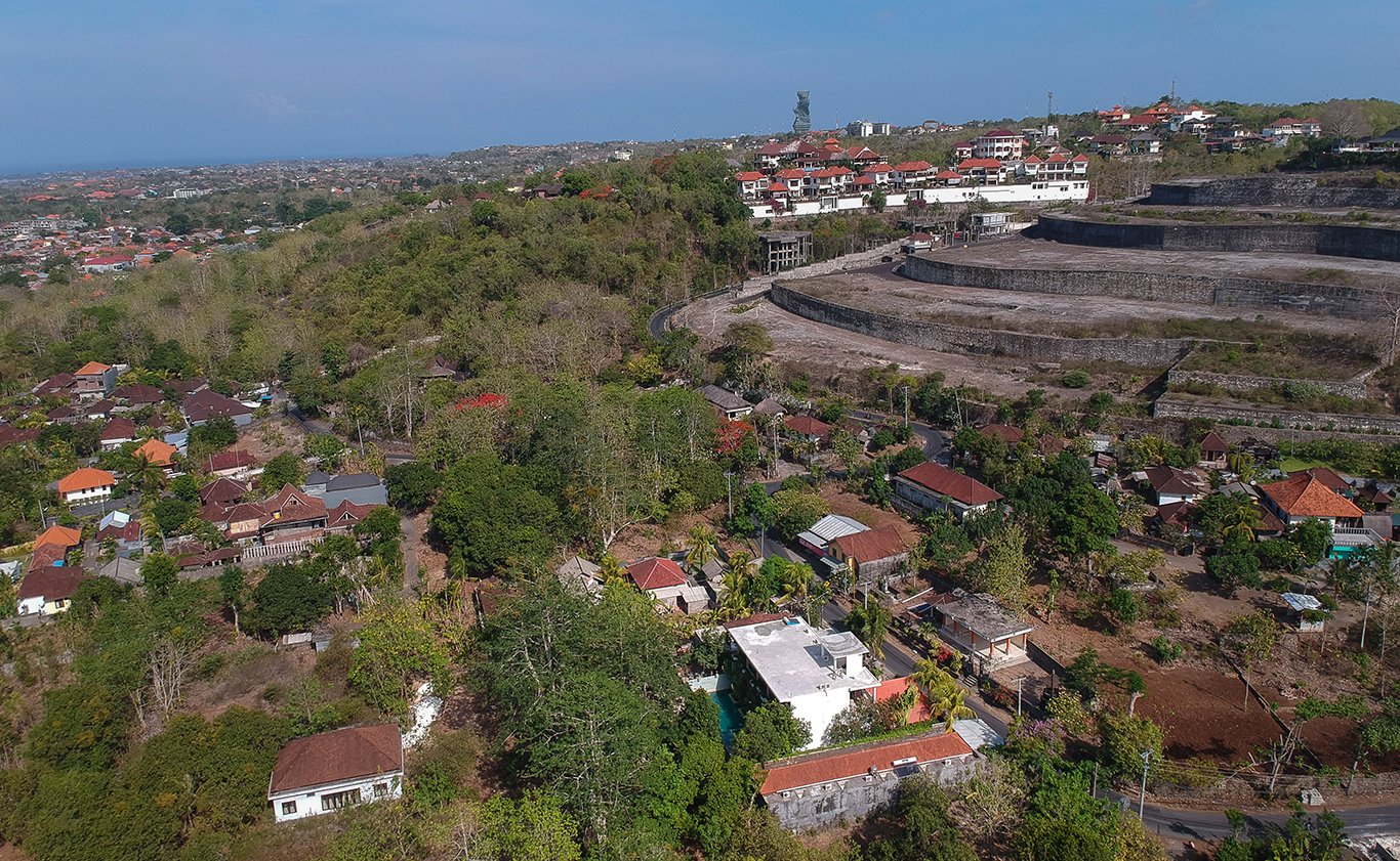 The photos taken facing to the north east and from here the Garuda Wisnu Kencana or GWK can be spotted. From the Maha Lokha the GWK statue located around 3km away.