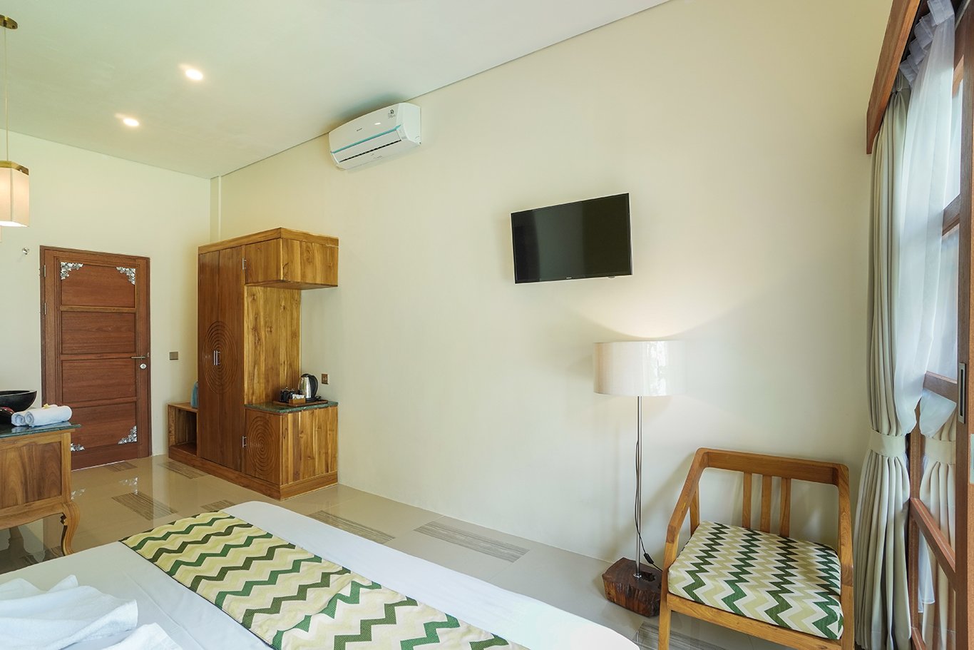 All bedroom at the Maha Lokha has TV with cable channel such as discovery, Nat Geo. The bedroom has its own AC conditioner controlled with a remote located on bedside table.