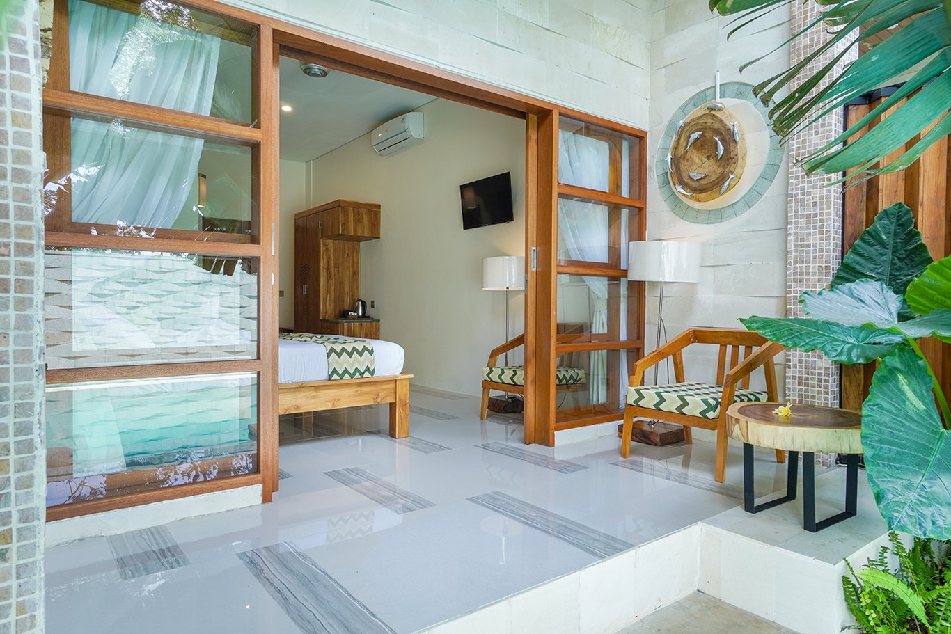 Each of the bedrooms has a chair located on the terrace facing the pool completed with coffee table. Here you can relaxed and maybe read some books accompanied with coffee or tea.
